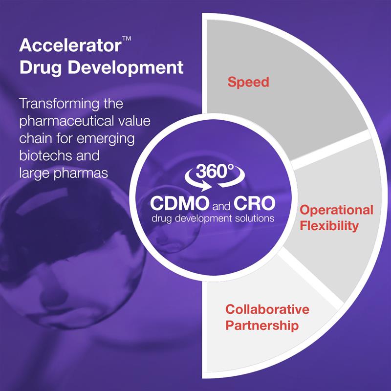 Introducing AcceleratorTM Drug Development, 360° CDMO and CRO solutions